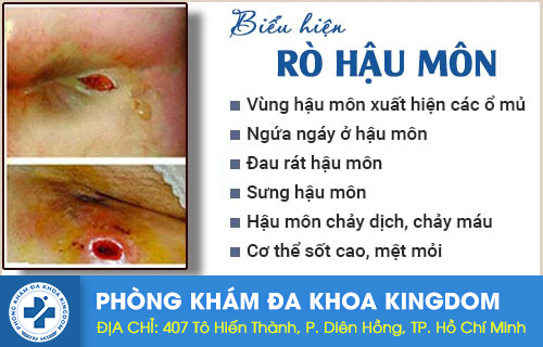 Triệu chứng: Hậu môn chảy mủ, dịch hôi, đau khi ngồi hoặc đi lại, vùng da quanh hậu môn thường xuyên bị viêm.