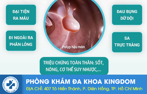 Triệu chứng: Đi ngoài ra máu, phân nhầy, cảm giác cộm vướng ở hậu môn.